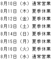 2022年7月26日 協和車輌 夏季休業日及び休業日の緊急対応 新着情報 2022.07.26 <夏季休業日のご案内> <休業日の緊急対応について> カーレスキュー(有)ハセガワ重建車輌(24時間対応) 永平寺(営):0776ー63-3548 高木本社:0776ー53-8934 日新火災サポートサービス(24時間対応) <事故のご相談>:0120-25-7474